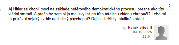 Chcem Vás dôrazne upozorniť, že takéto osobné útoky nie sú len neslušné, ale sú zároveň dehumanizujúce a neprijateľné, najmä voči osobe s diagnostikovaným Aspergerovým syndrómom. Takýto jazyk nie je kritikou názorov, ale útokom na samotnú osobu – presne to, proti čomu sp, ako autor vo viacerých článkoch vystupoval.